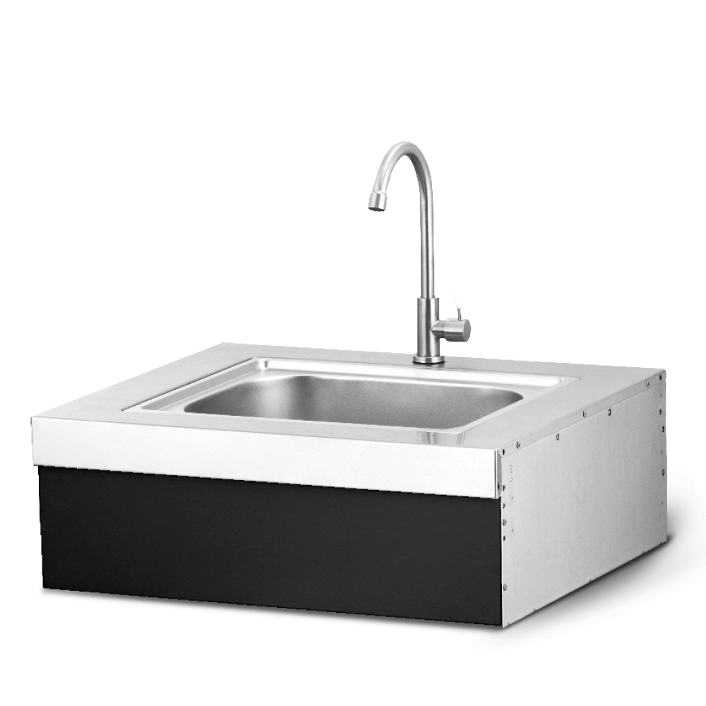 Le panneau frontal noir Grandhall remplace le panneau frontal en acier inoxydable de l'évier encastré et s'harmonise parfaitement avec le Maxim.