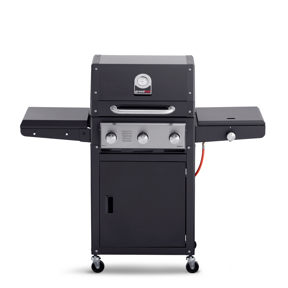Le Xenon 3 possède un système de brûleurs traditionnel et est équipé de deux grilles de cuisson en fonte et d'une plaque de cuisson en fonte. Le brûleur latéral peut être utilisé, par exemple, pour cuire des pâtes ou frire des crevettes géantes. Grâce à ses roues robustes, le Grandhall Xenon Black est très facile à déplacer.