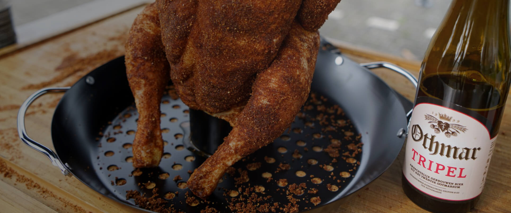 garlic cloves, thyme sprigs and sage. fill it then to the brim with beer. Lubricate the chicken lightly with olive oil and then with the Grate Goods rub. Slide the chicken, upright, over the tray. Close the top of the chicken with a red onion. Make sure that it is properly closed, so that the beer steams through as much as possible. […]